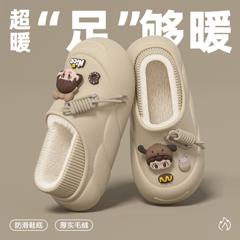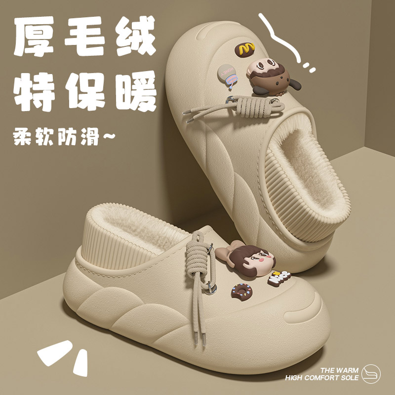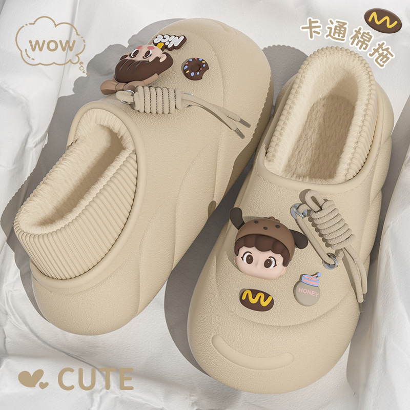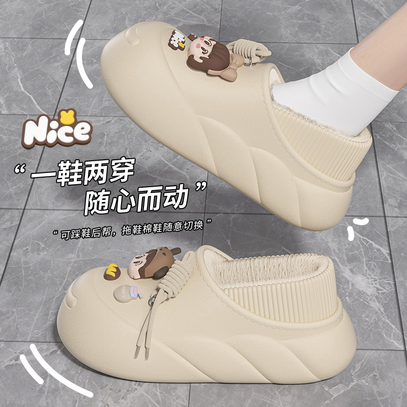 可爱包跟棉拖鞋女2025冬季新款室内居家加绒保暖防水踩屎感棉鞋女,浙江 金华