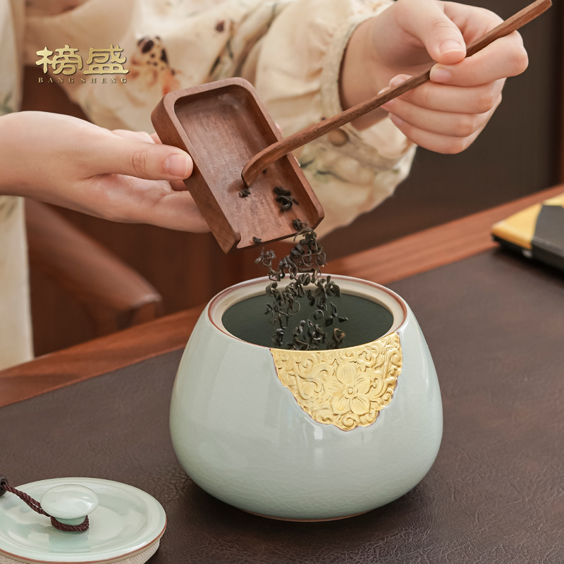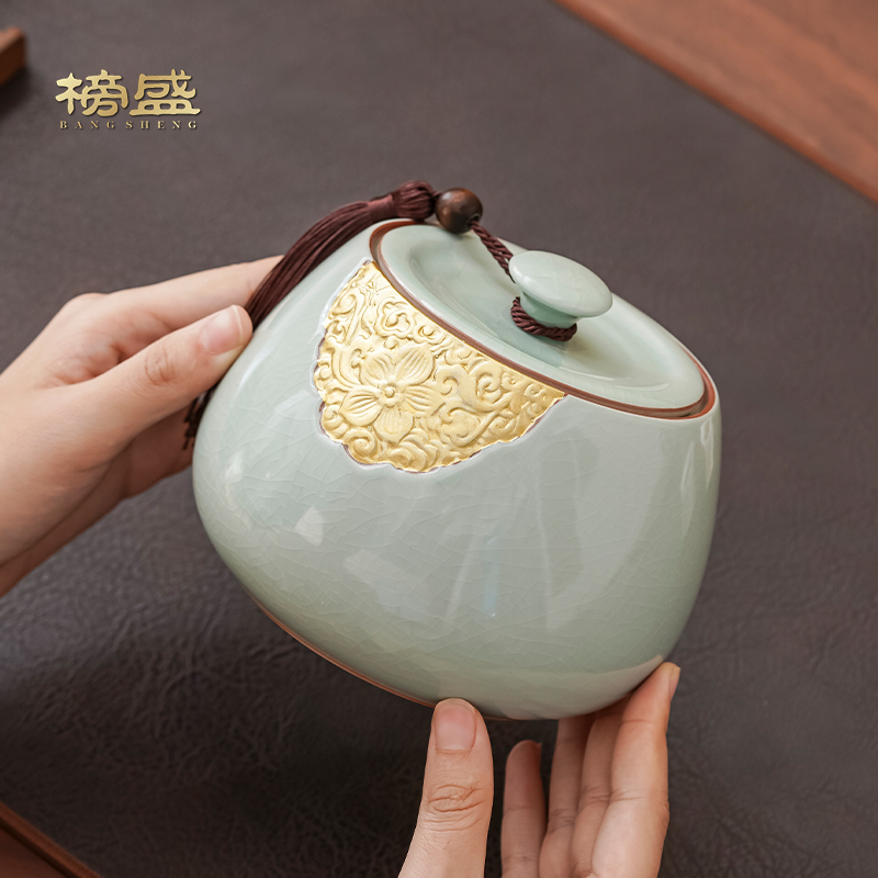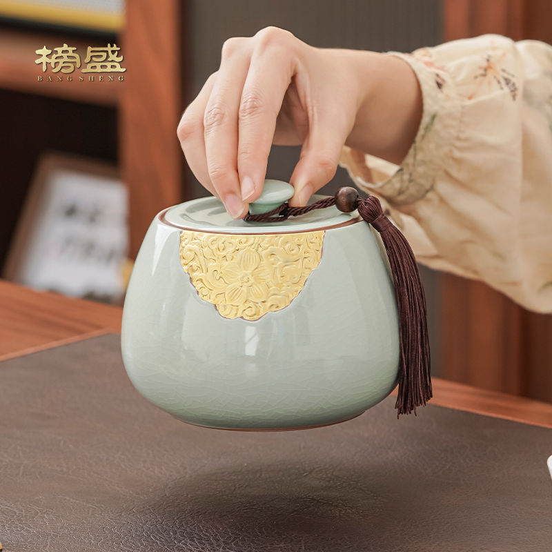 茶叶罐中式哥窑高档精品手工家用陶瓷密封罐大号红茶绿茶存储罐