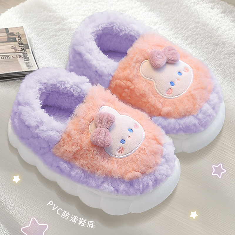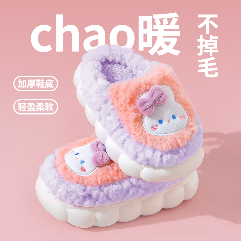 冬季儿童棉鞋女童亲子可爱卡通包跟防滑室内男童居家毛拖鞋兔子,浙江 杭州