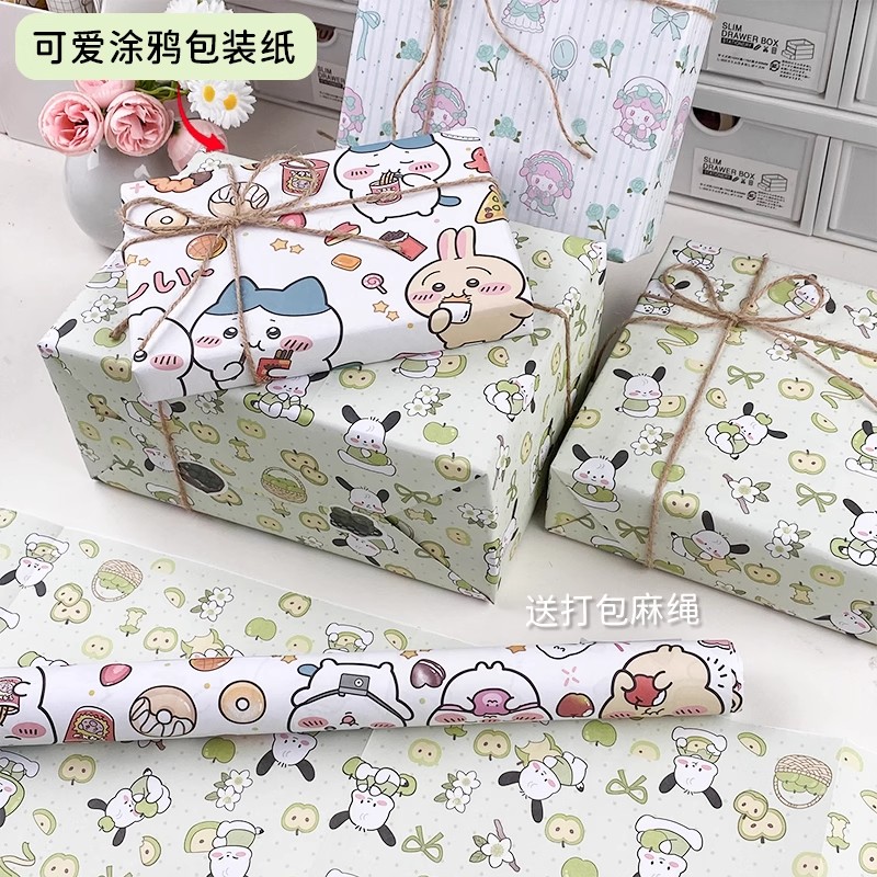 可爱卡通吉伊卡哇美洋洋包装纸节日儿童节国庆新年礼物礼品包书皮高颜值精美材料包装装饰diy礼物小朋友玩具