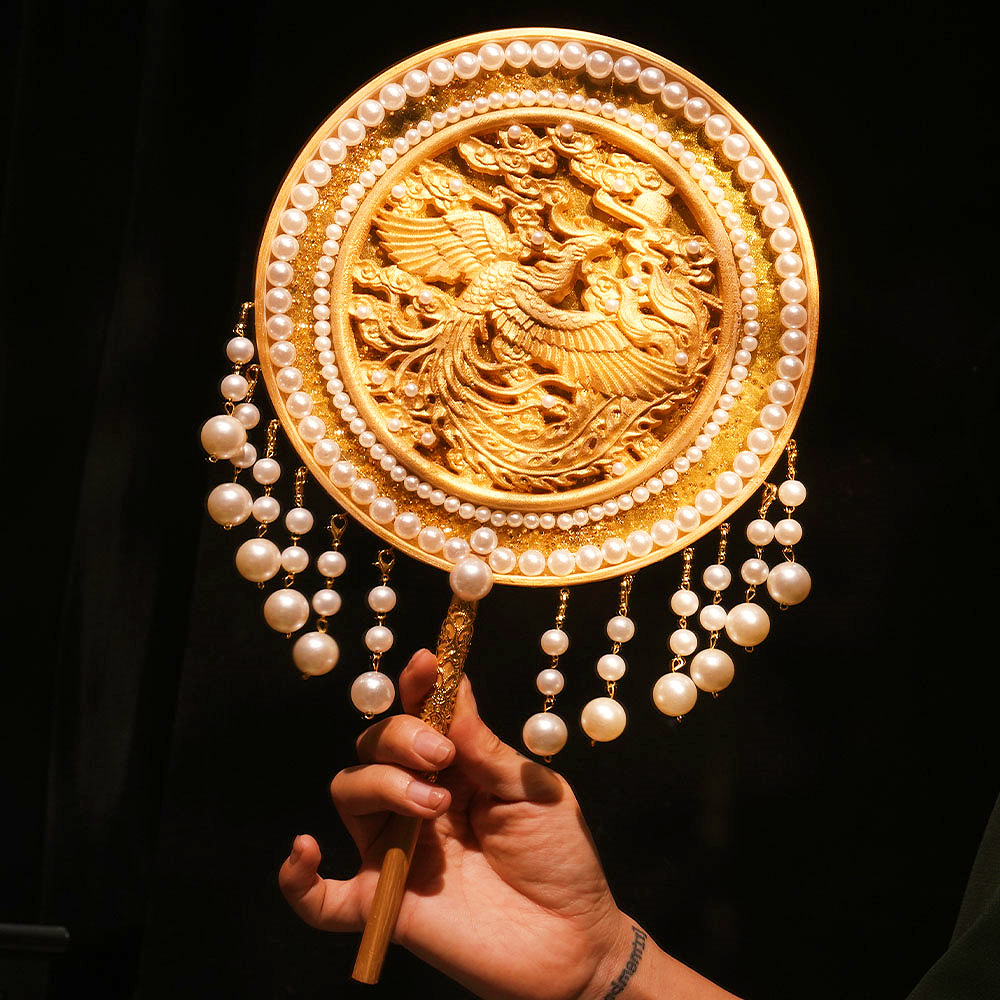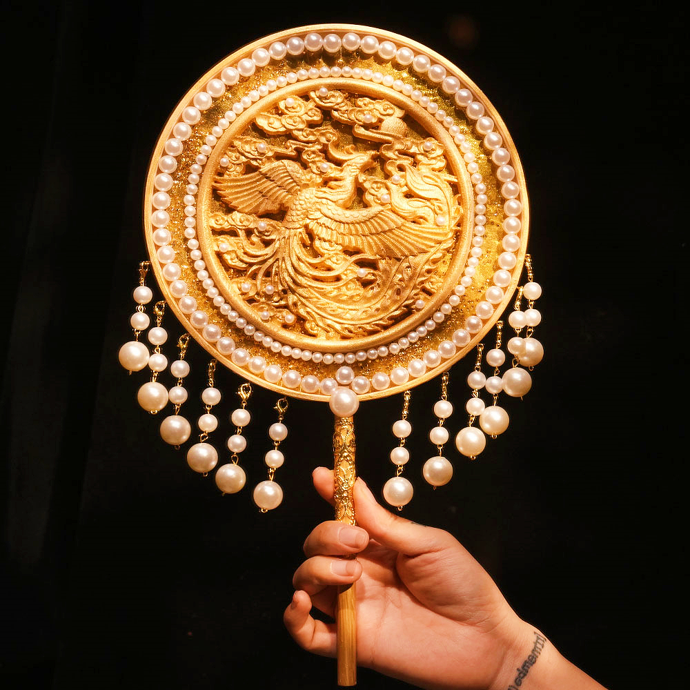 新娘团扇结婚diy材料包手工喜扇金色新中式婚礼出嫁手捧花送闺蜜,湖北 潜江
