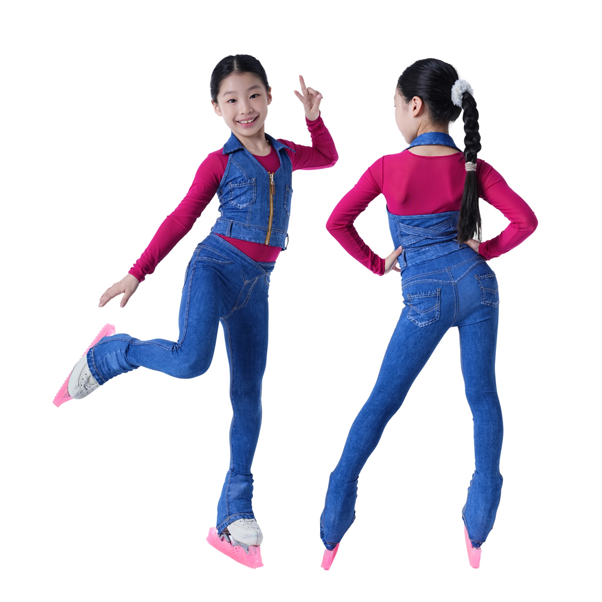 设计款|牛仔训练花滑套装/滑冰裤/高弹运动面料/修身V腰显瘦甜酷