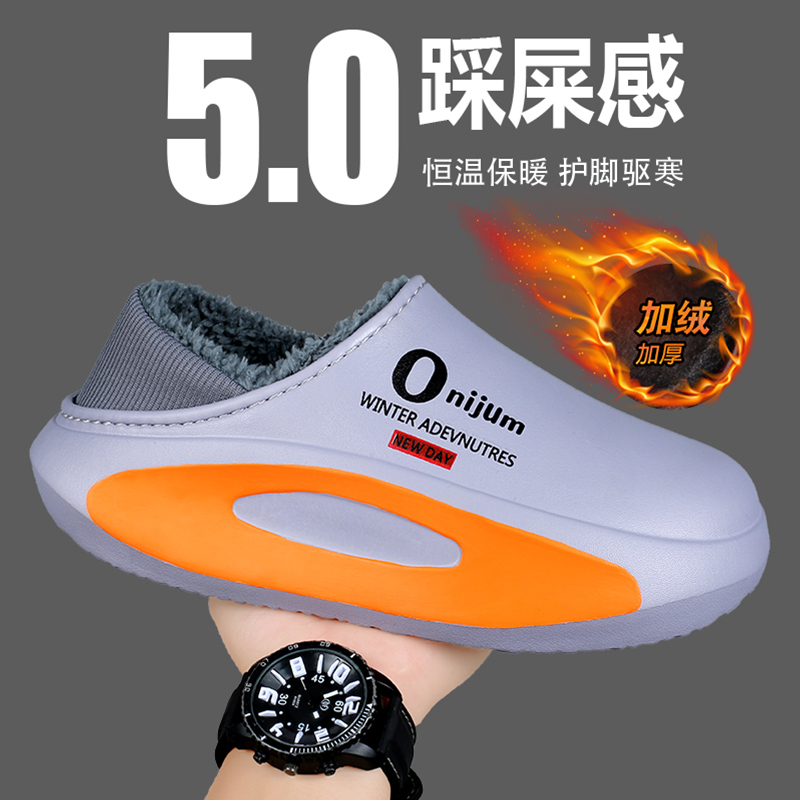 包头棉拖鞋男款冬季加绒加厚室内居家包跟踩屎感防水防滑保暖棉鞋,福建 泉州