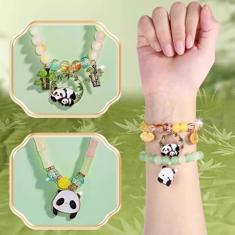 熊猫手链串珠手工diy材料女孩穿珠子项水晶手串女生礼盒儿童玩具8