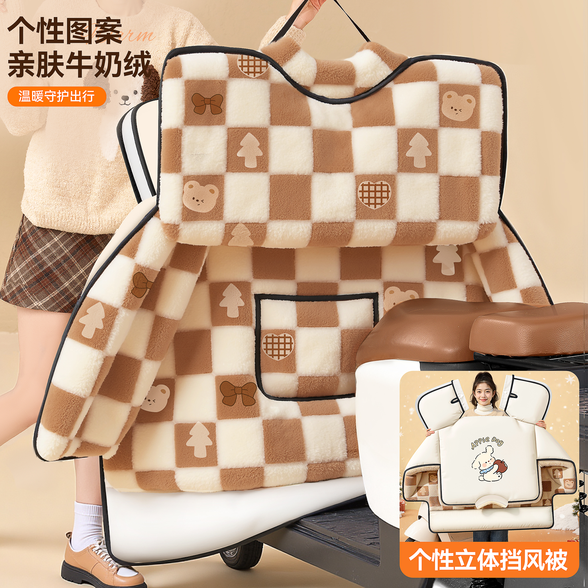 电动车挡风被冬季加绒加厚电瓶摩托车加大防水防风罩护脖冬款25新,浙江 金华