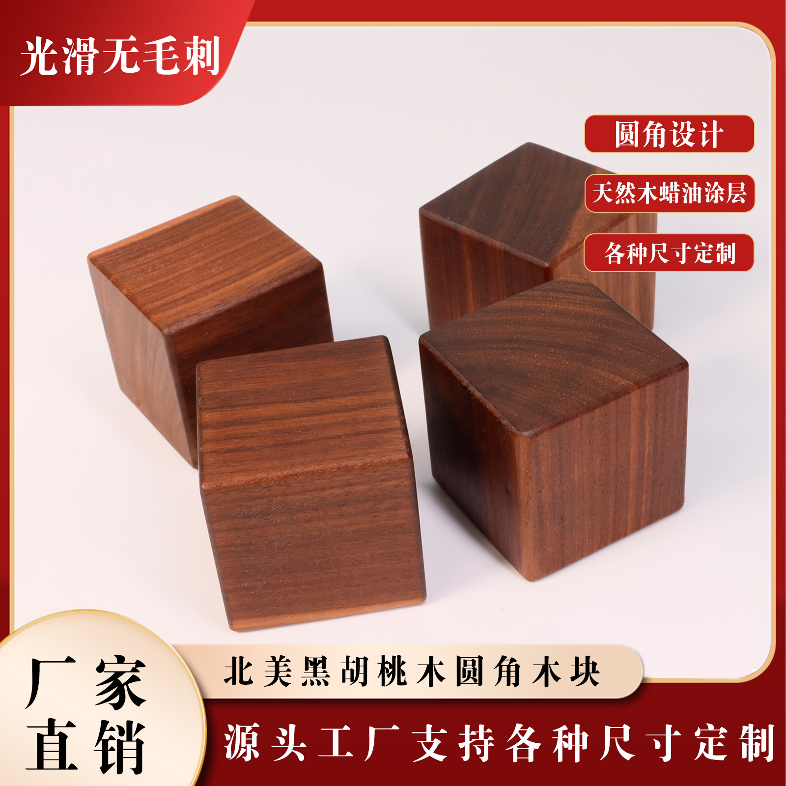 进口北美黑胡桃木方块圆角实木方正方形木板木雕diy材料底座摆件