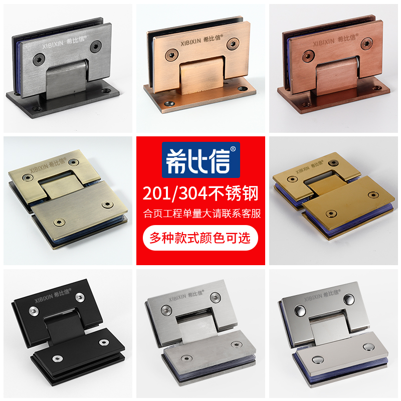 不锈钢90度浴室夹180度酒店淋浴房活动合页玻璃门夹实心无框铰链