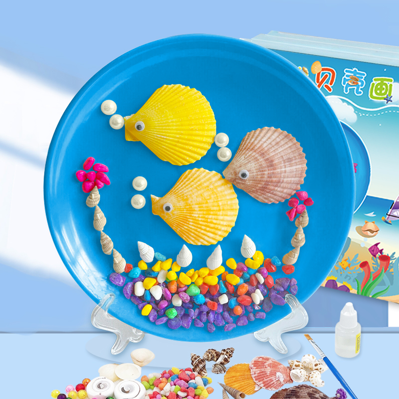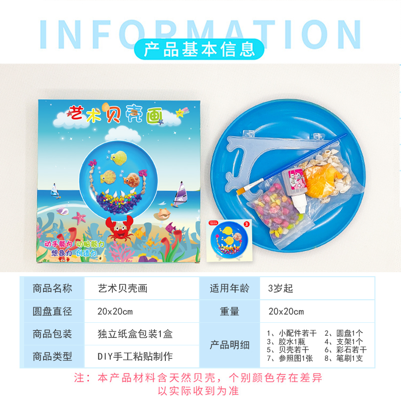 diy贝壳画幼儿园儿童手工制作材料包立体粘贴画圆盘画益智创意,浙江 金华