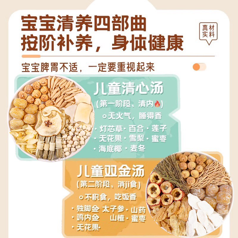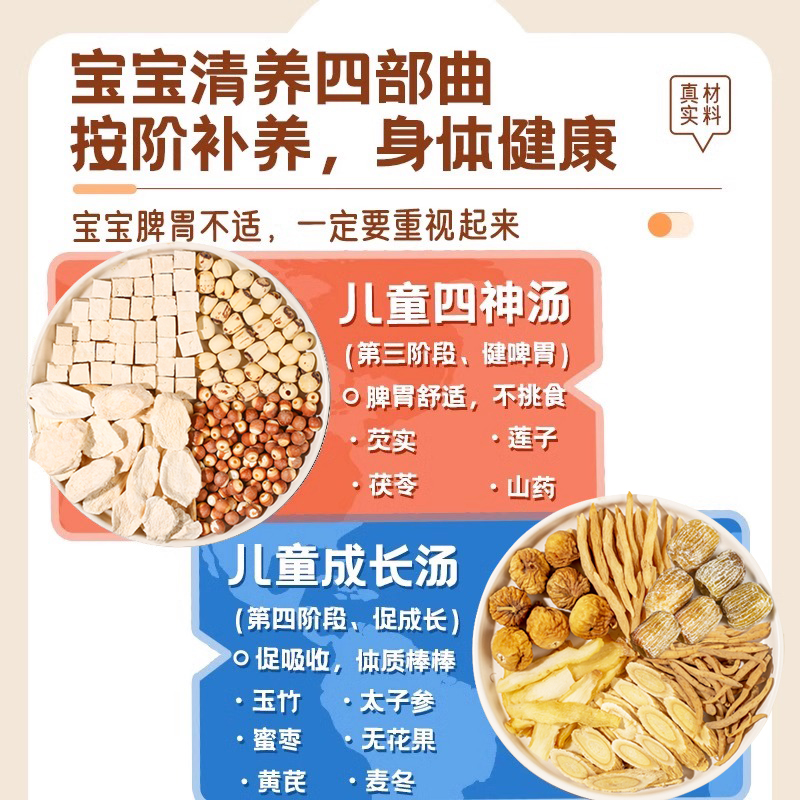 儿童四神汤太子参麦冬调理脾胃灯芯草清心鸡内金汤成长煲汤材料包,安徽 亳州