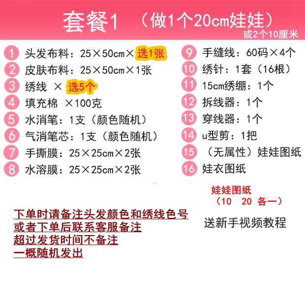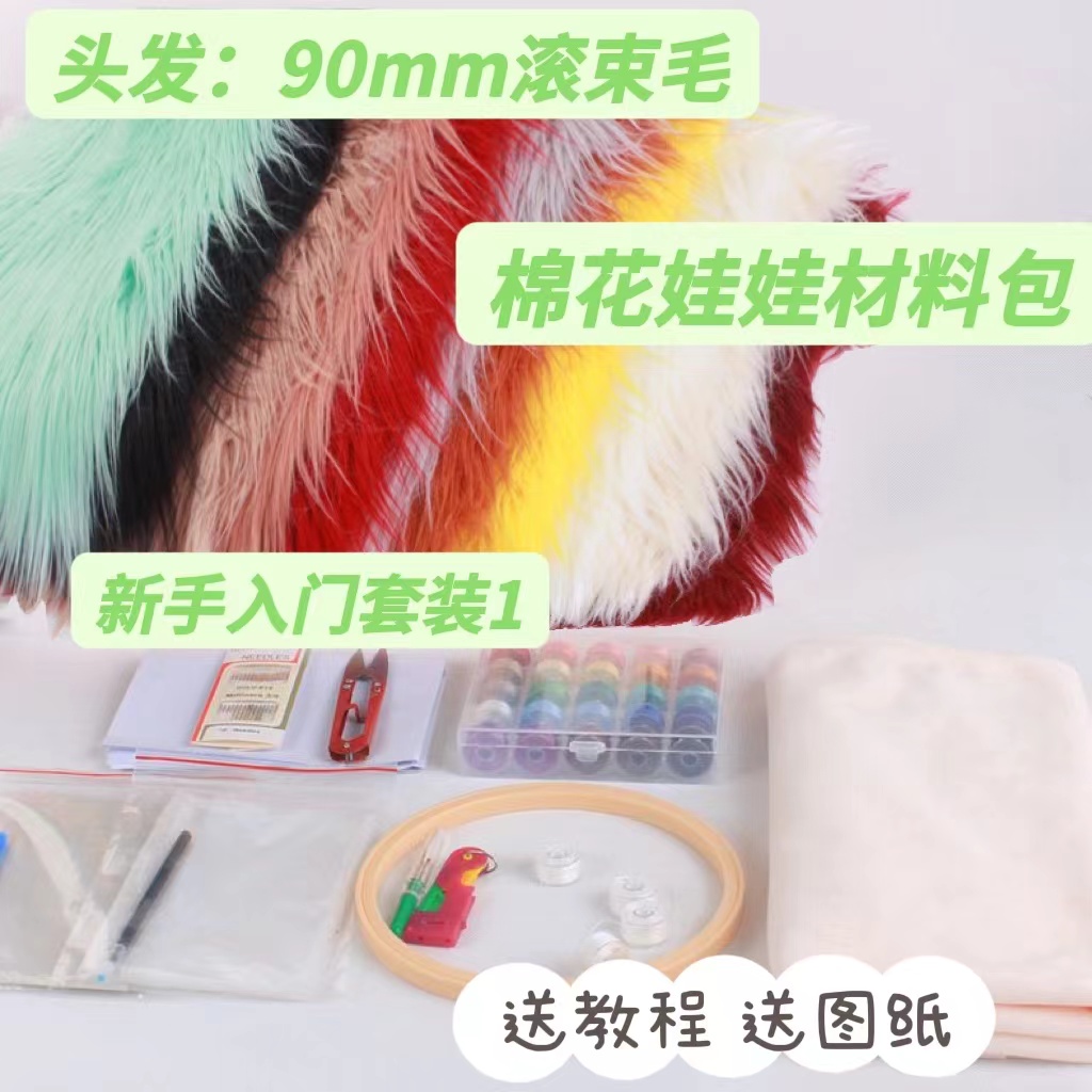棉花娃娃DIY手工材料包10厘米 20厘米短中长毛头发新手套装送教程