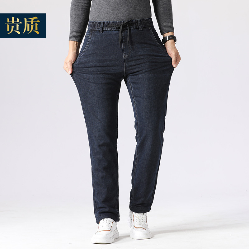 秋冬男士商务牛仔裤中年人石墨烯抗静电高腰宽松中老年石墨烯厚款,河南 南阳