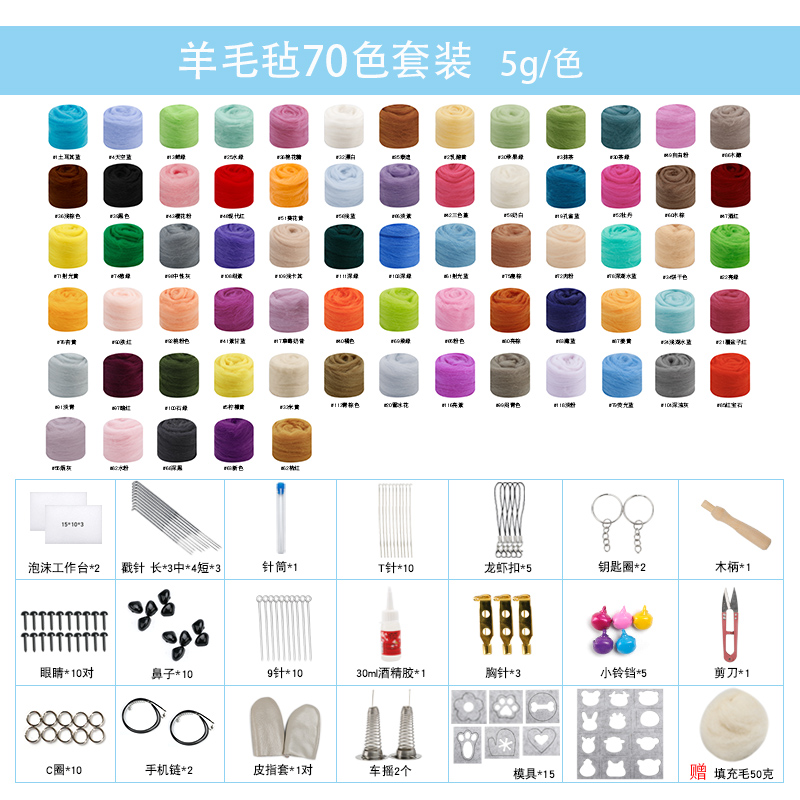 羊毛毡工具扎扎乐戳戳乐彩色玩偶手工diy新手材料包70S羊毛条5g,浙江 丽水