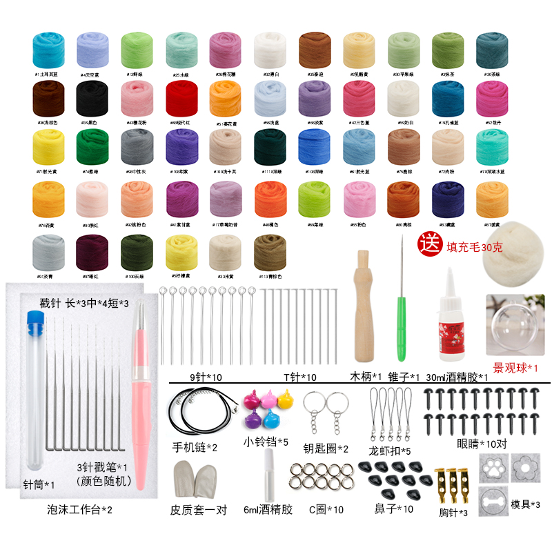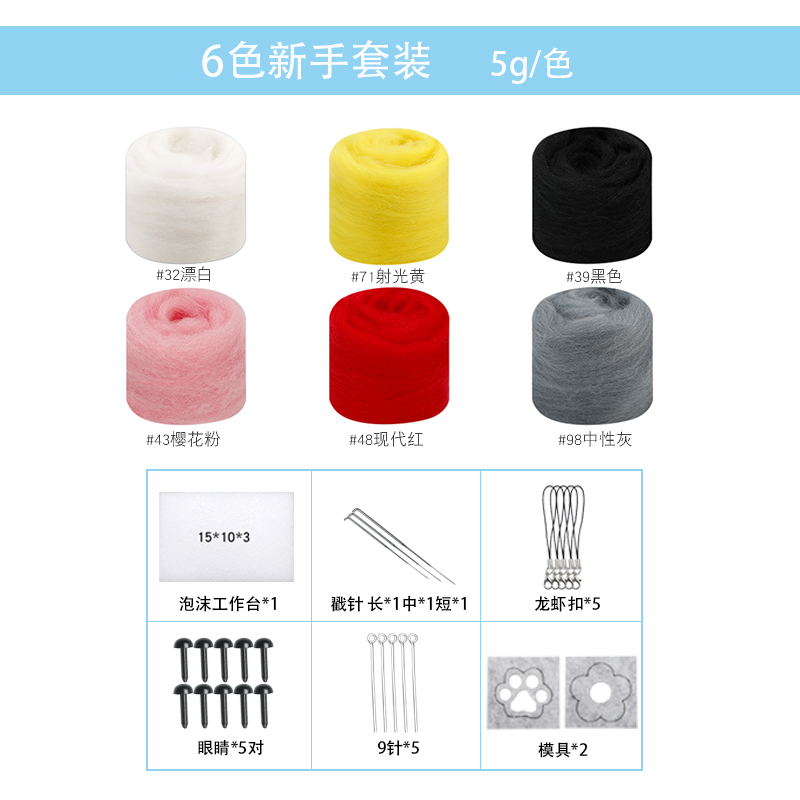 羊毛毡工具扎扎乐戳戳乐彩色玩偶手工diy新手材料包70S羊毛条5g