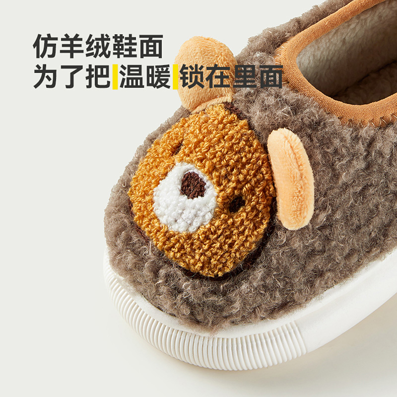 小熊棉鞋冬季包跟儿童棉拖鞋男童小童居家拖鞋室内宝宝保暖毛毛鞋,上海