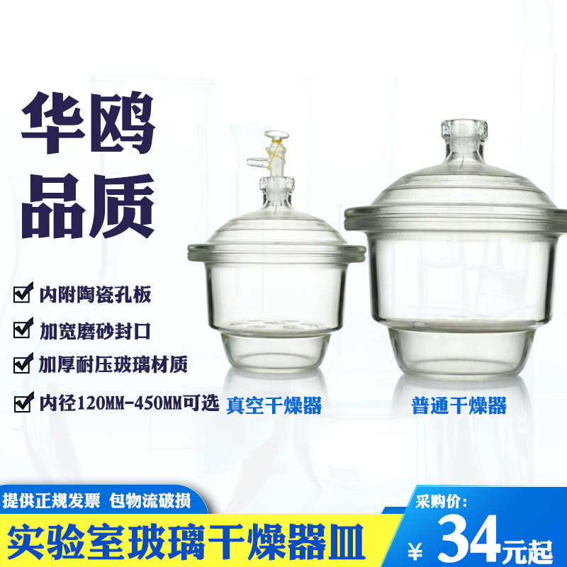 华鸥玻璃干燥器实验室干燥皿210 300 240 400 mm透明真空干燥皿棕色化学器皿玻璃仪器透明附瓷板减压干燥皿,江苏 盐城