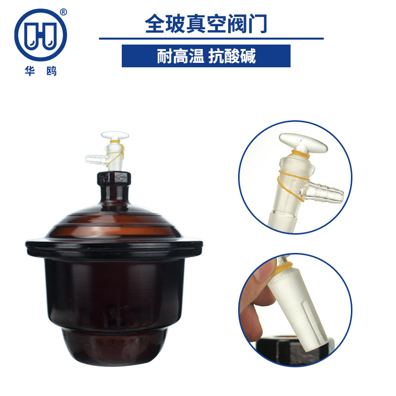 华鸥玻璃干燥器实验室干燥皿210 300 240 400 mm透明真空干燥皿棕色化学器皿玻璃仪器透明附瓷板减压干燥皿
