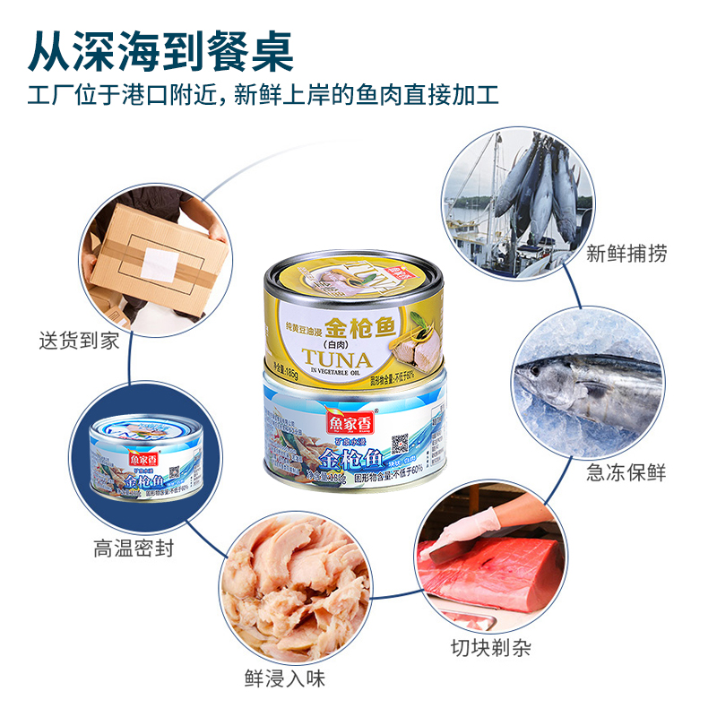 鱼家香金枪鱼罐头油浸即食吞拿鱼海鲜鱼肉鱼韩国拌饭寿司专用材料,山东 青岛