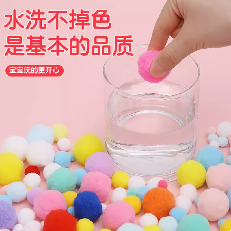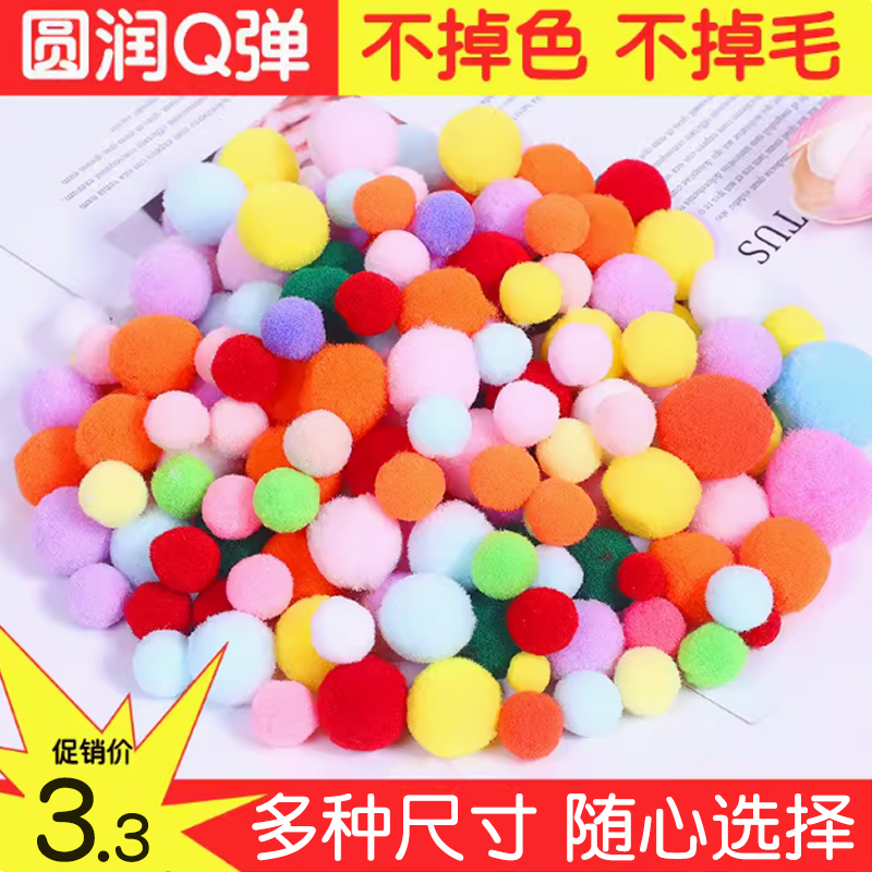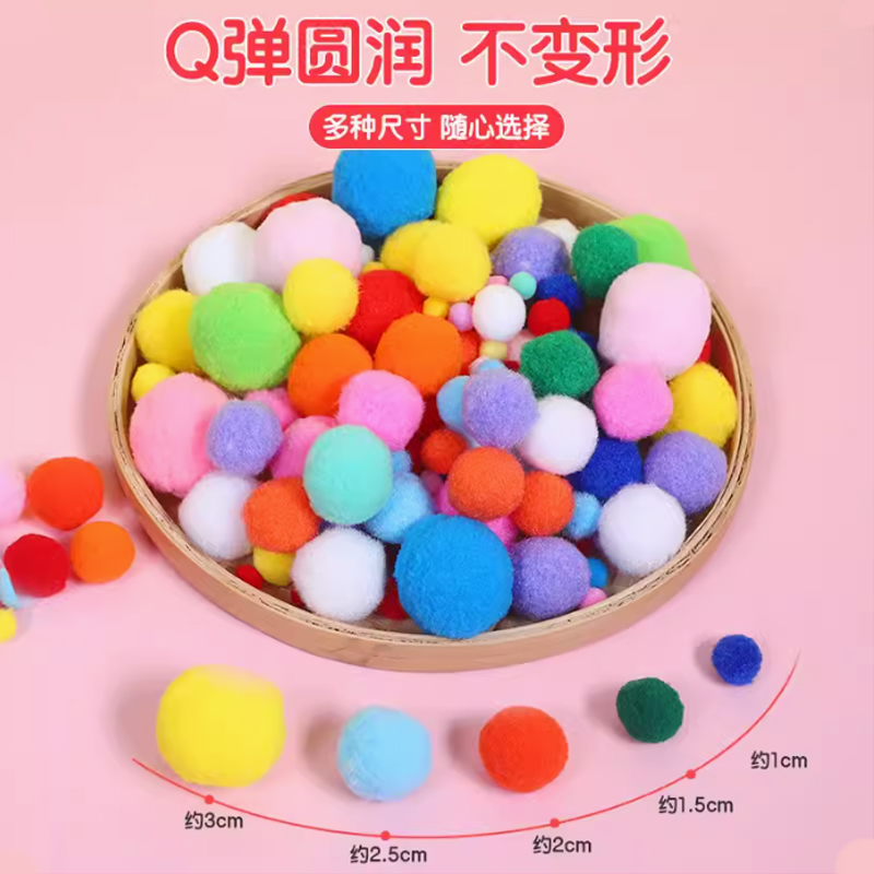 混装高弹彩色小毛球diy儿童创意手工金葱毛绒球大小混合饰品材料,浙江 金华