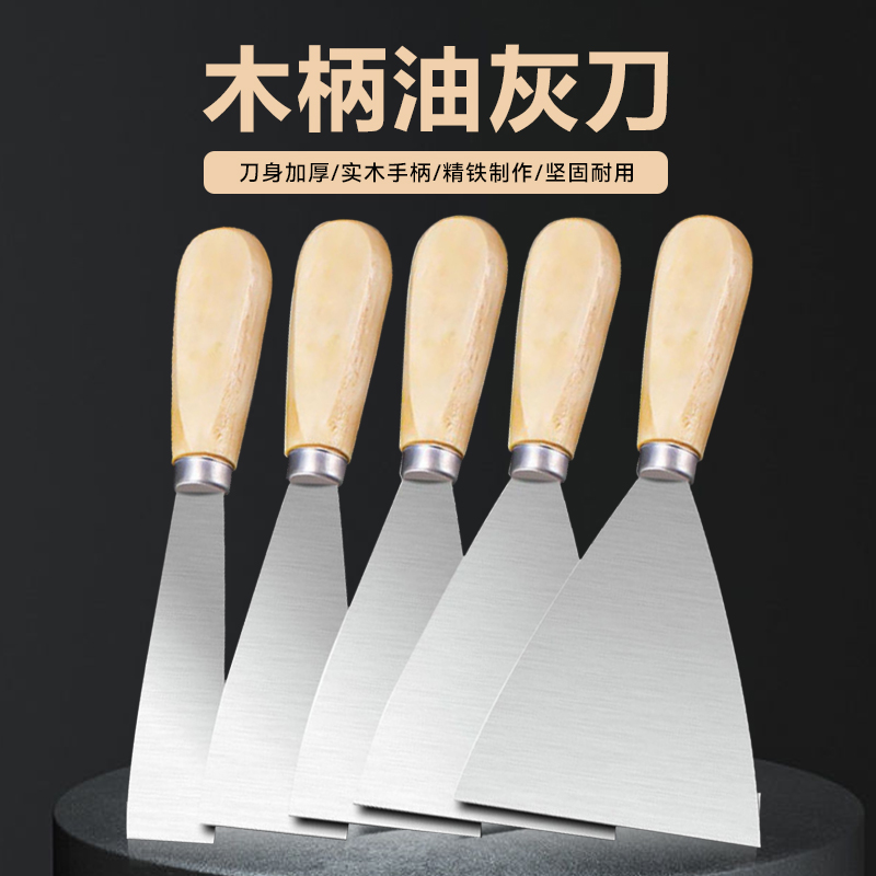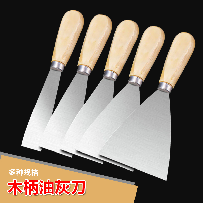 油灰刀木柄不锈钢加厚型小铲刀刮墙抹腻子批灰油漆工具铲子抹泥刀,安徽 合肥