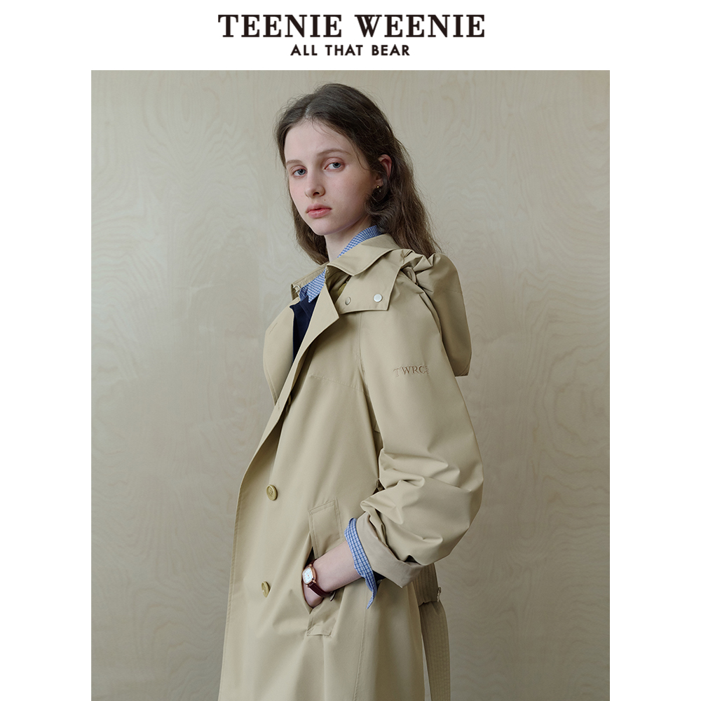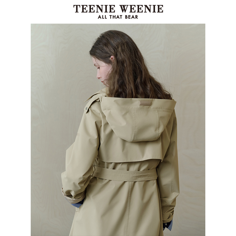 TeenieWeenie小熊女装风衣2025秋季新款干练通勤商务可拆卸帽外套,上海