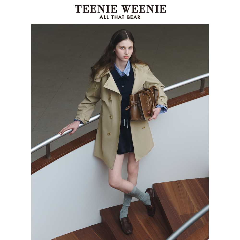 TeenieWeenie小熊女装风衣2025秋季新款干练通勤商务可拆卸帽外套