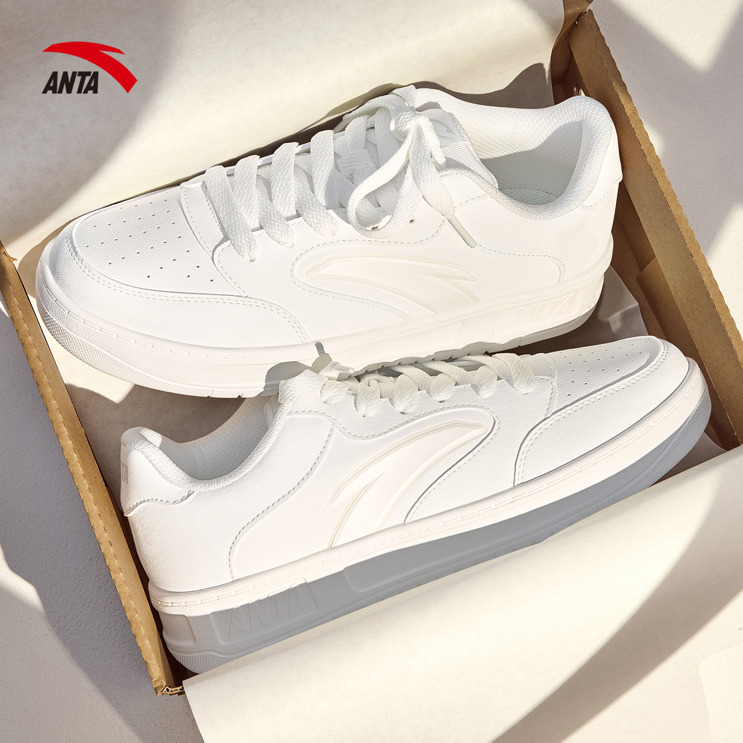 安踏轻松板鞋女鞋小白鞋冬季新款正品学生粉色鞋子厚底增高运动鞋
