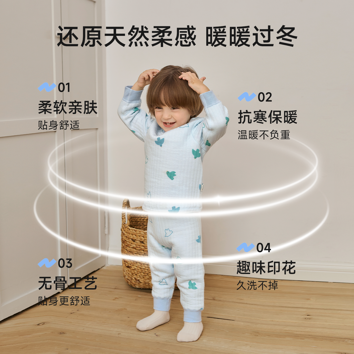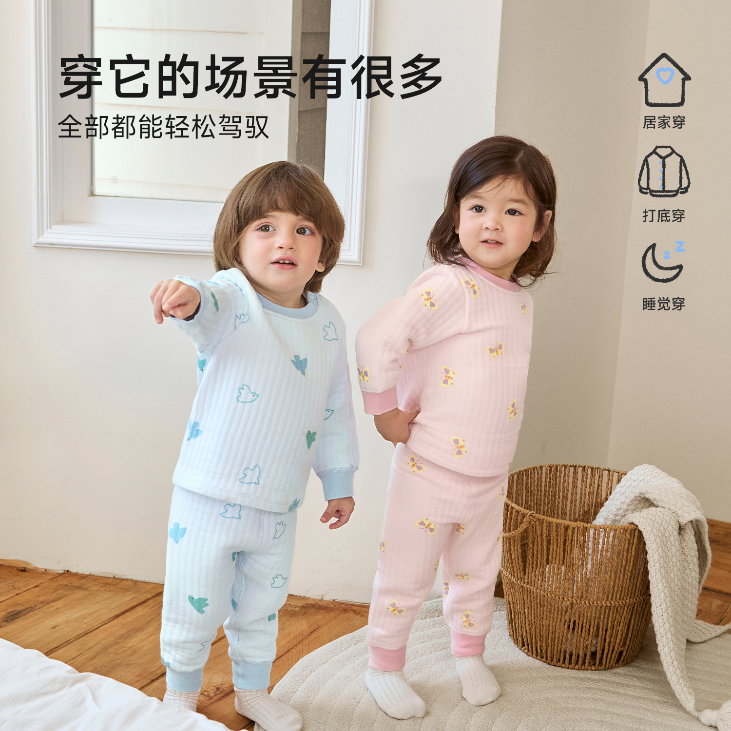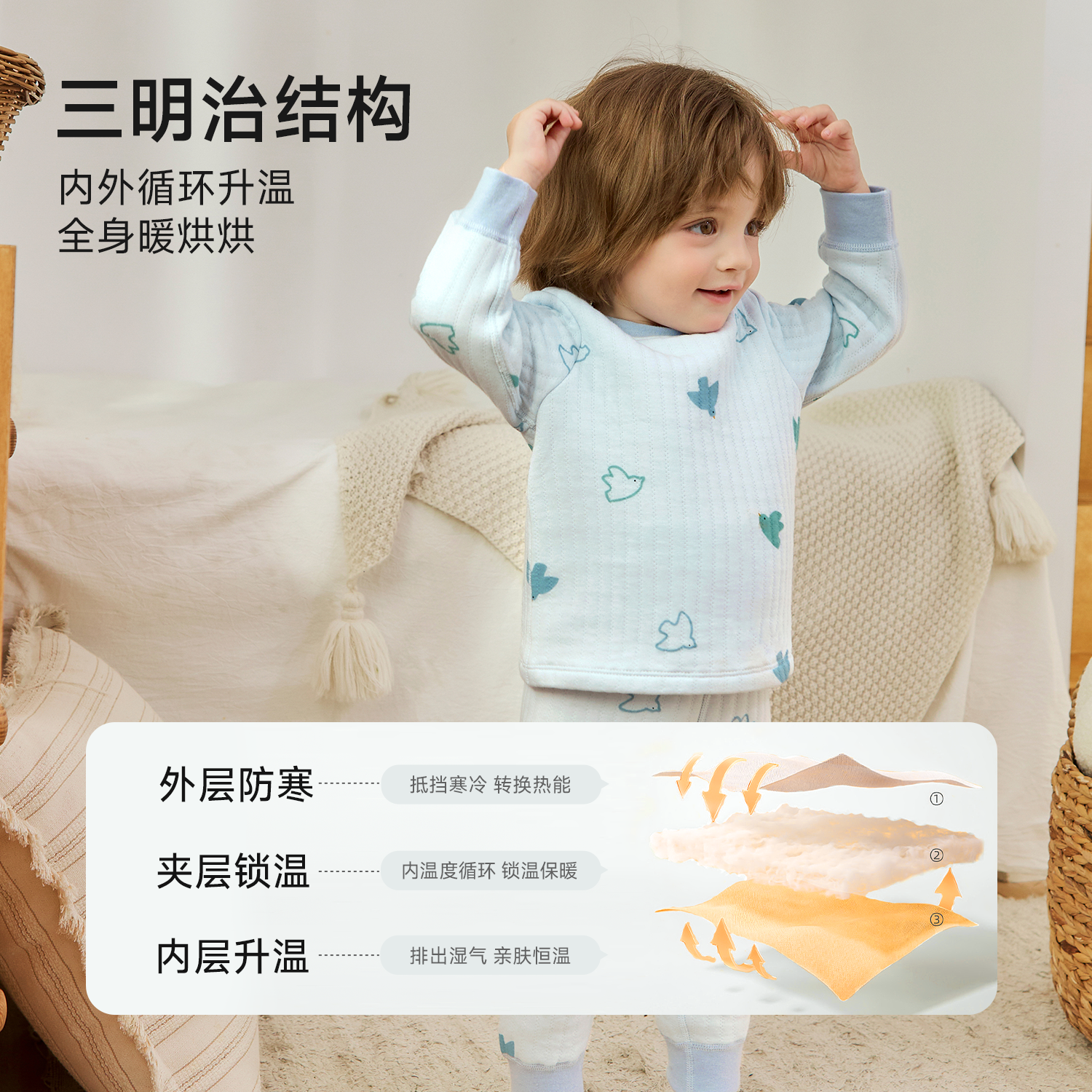 尼多熊25冬季新款宝宝夹棉内衣套装男女童高腰秋衣秋裤加厚保暖,广东 中山