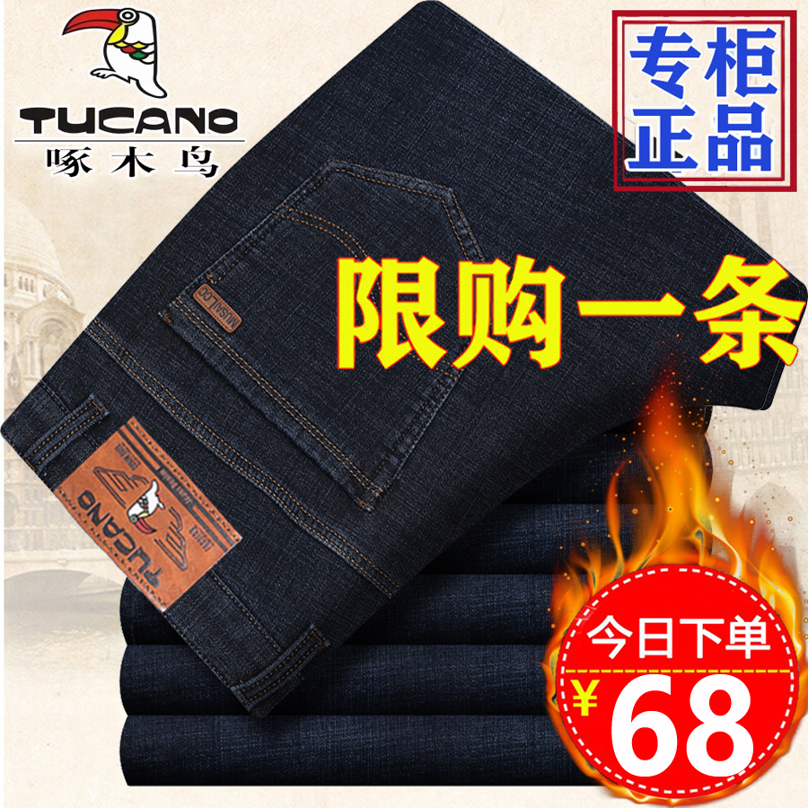啄木鸟加绒加厚牛仔裤中年男士弹力直筒男裤秋冬厚款商务休闲裤子,安徽 合肥