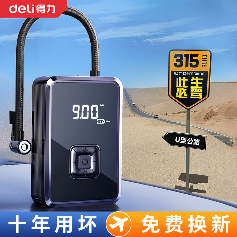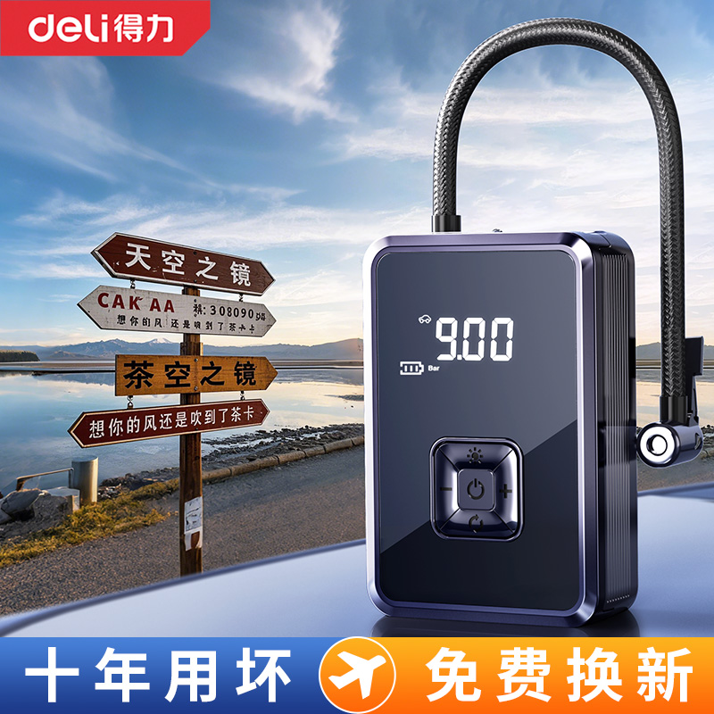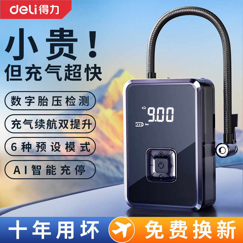 得力车载充气泵汽车轮胎打气泵自行车电动打气筒高压便携式打气筒