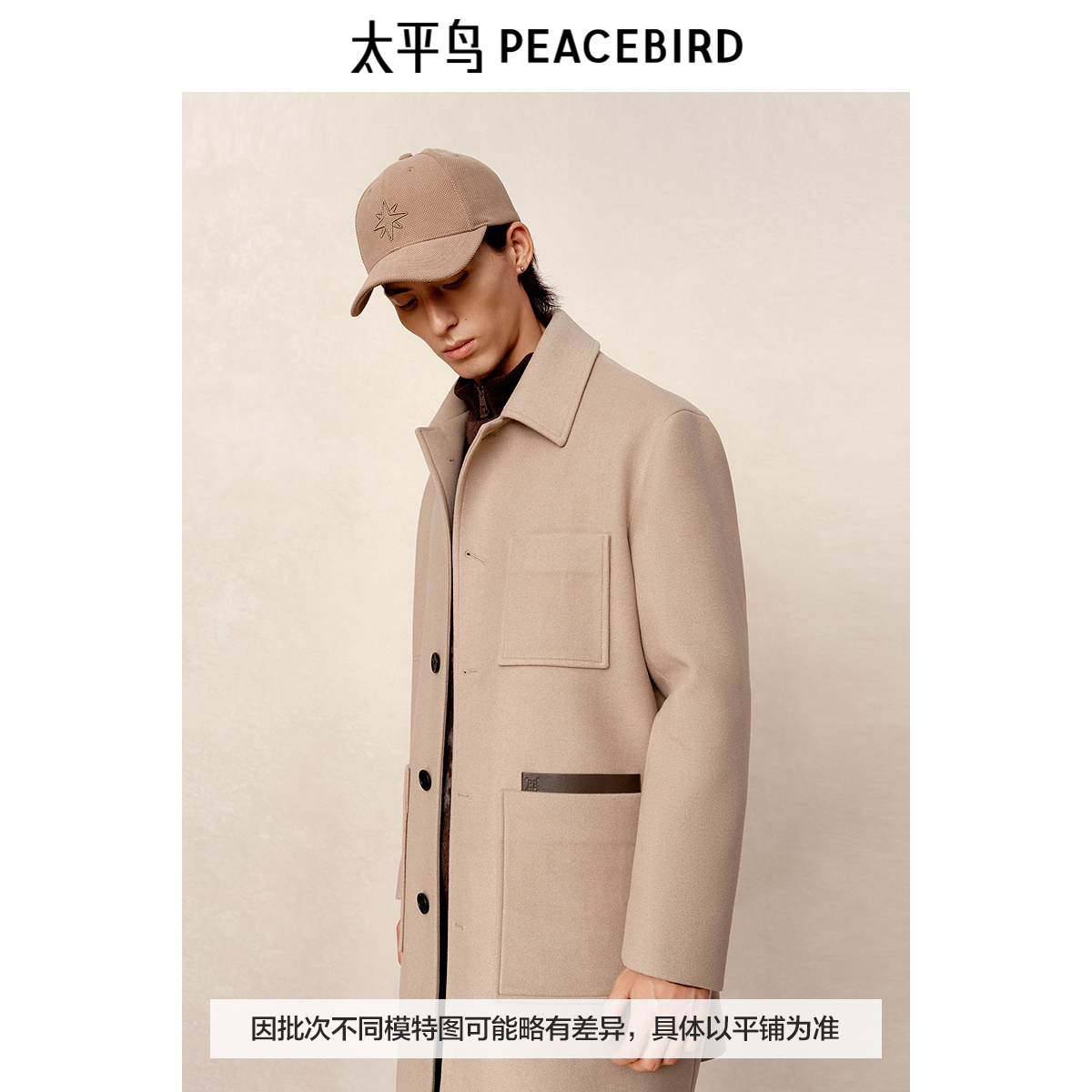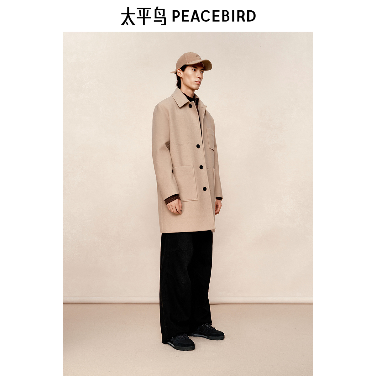 太平鸟男装大衣冬季双面呢大衣宽松男士绵羊毛外套质感毛呢大衣