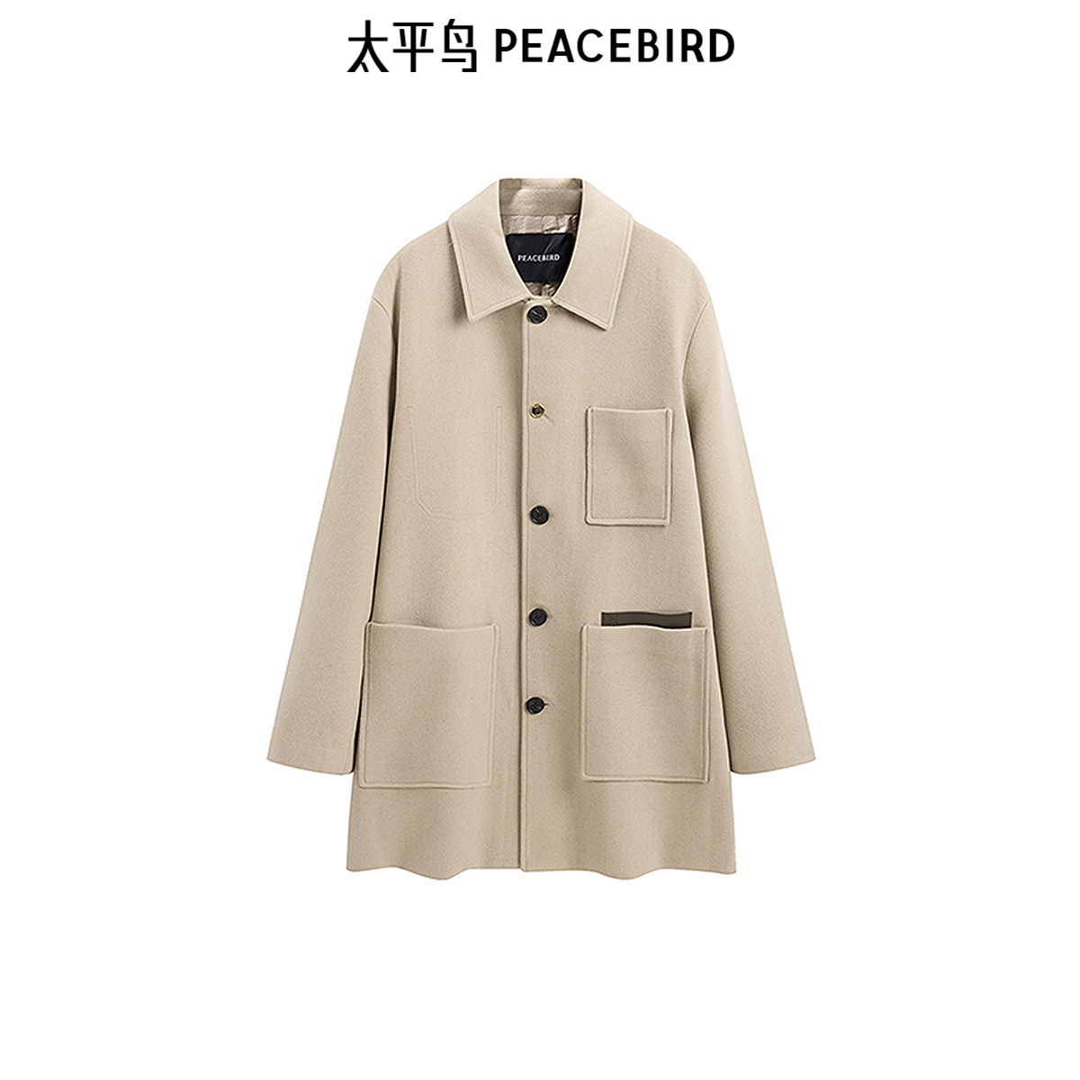 太平鸟男装大衣冬季双面呢大衣宽松男士绵羊毛外套质感毛呢大衣,浙江 宁波