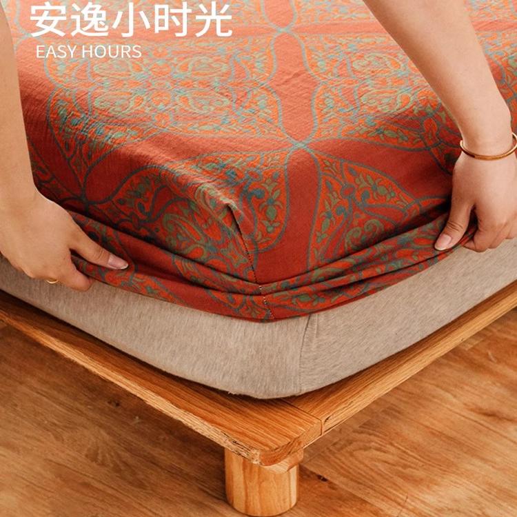 双层纱床笠单件纯棉100全棉秋冬榻榻米床罩加厚防滑床单三件套1.2