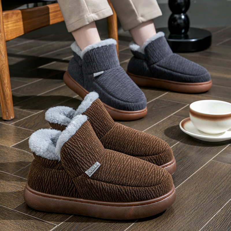中老年加绒加厚牛筋底防滑棉拖鞋高包跟男款女士外穿室内居家棉鞋