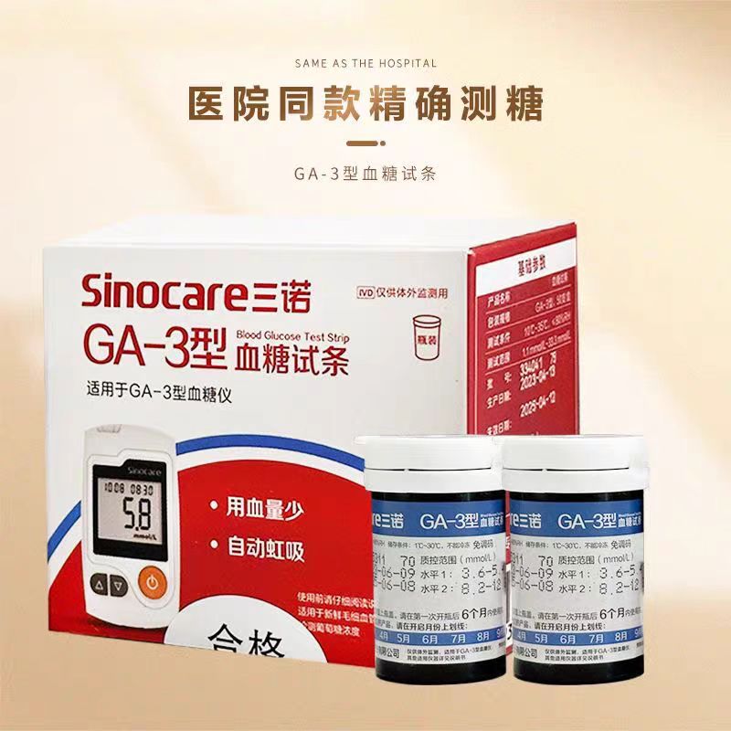三诺GA-3型血糖试条血糖测试仪器免调码型试条GA-3血糖试纸条试纸,安徽 合肥