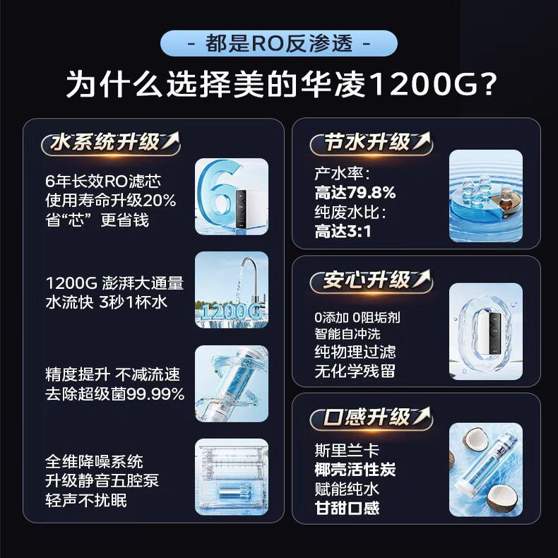 [0阻垢剂]美的出品华凌真鲜活1200g家用净水器直饮机RO反渗透新款