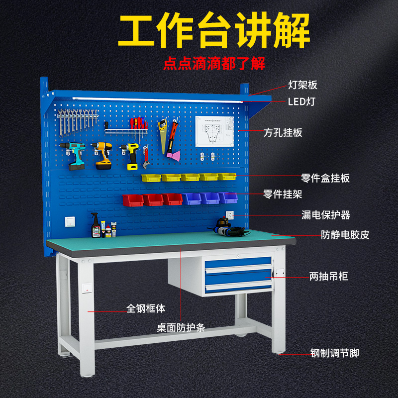 防静电台工作台重型操作台防静电钳工台车间维修检验台虎钳操作桌