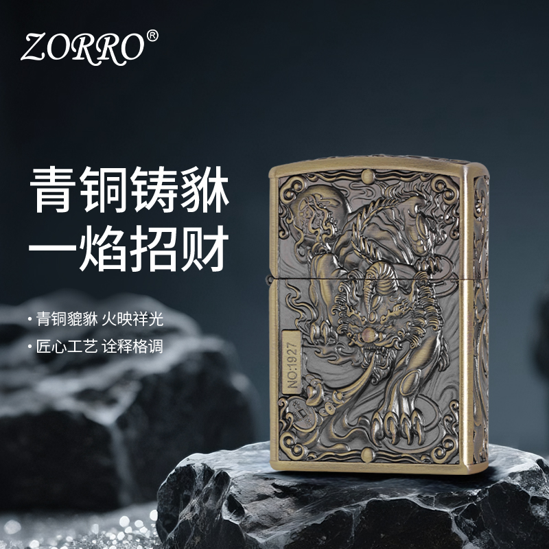 ZORRO佐罗官方正品煤油打火机防风貔貅高档礼盒生日送男朋友礼物