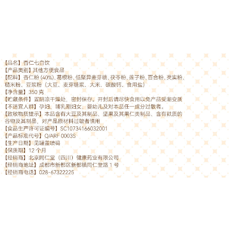 北京同仁堂燕窝纯杏仁七白饮粉原材料正品官方旗舰店营养早餐代餐