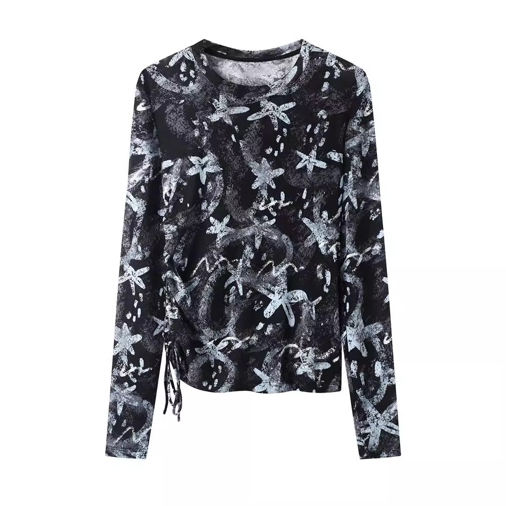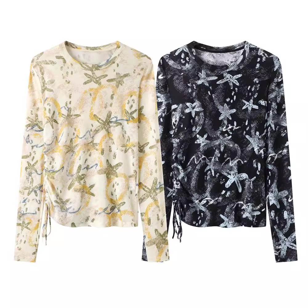 DN高端定制2025秋季新款时尚百搭圆领花卉印花长袖T恤皮肤衣女,江苏 苏州