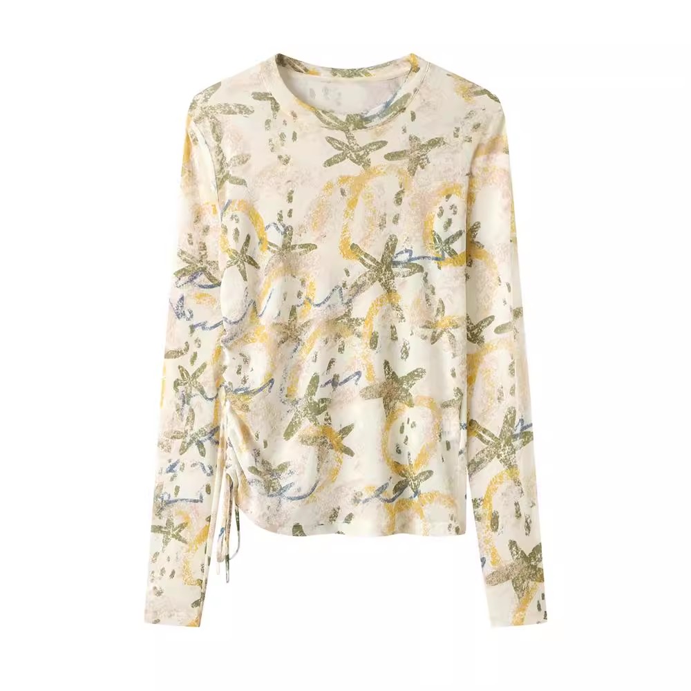 DN高端定制2025秋季新款时尚百搭圆领花卉印花长袖T恤皮肤衣女