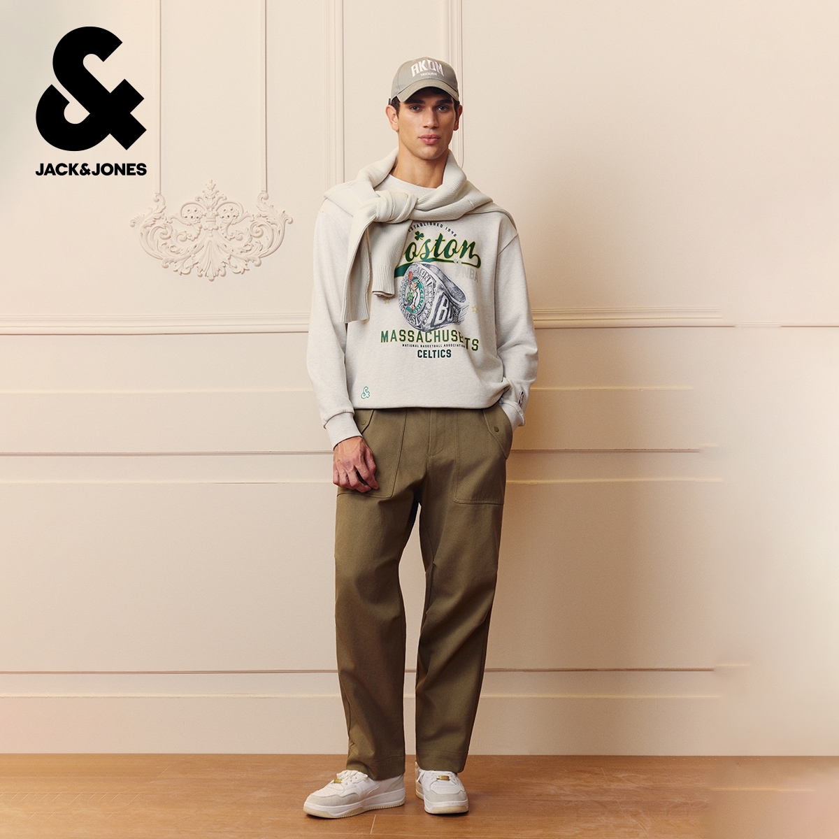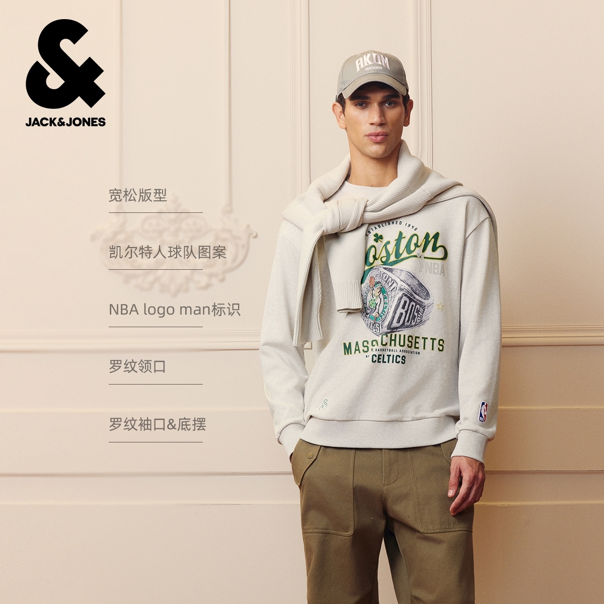 杰克琼斯奥特莱斯NBA联名男装卫衣秋季印花舒适纯棉廓形圆领上衣