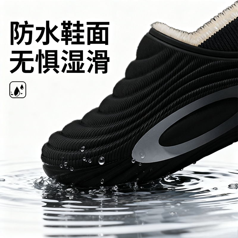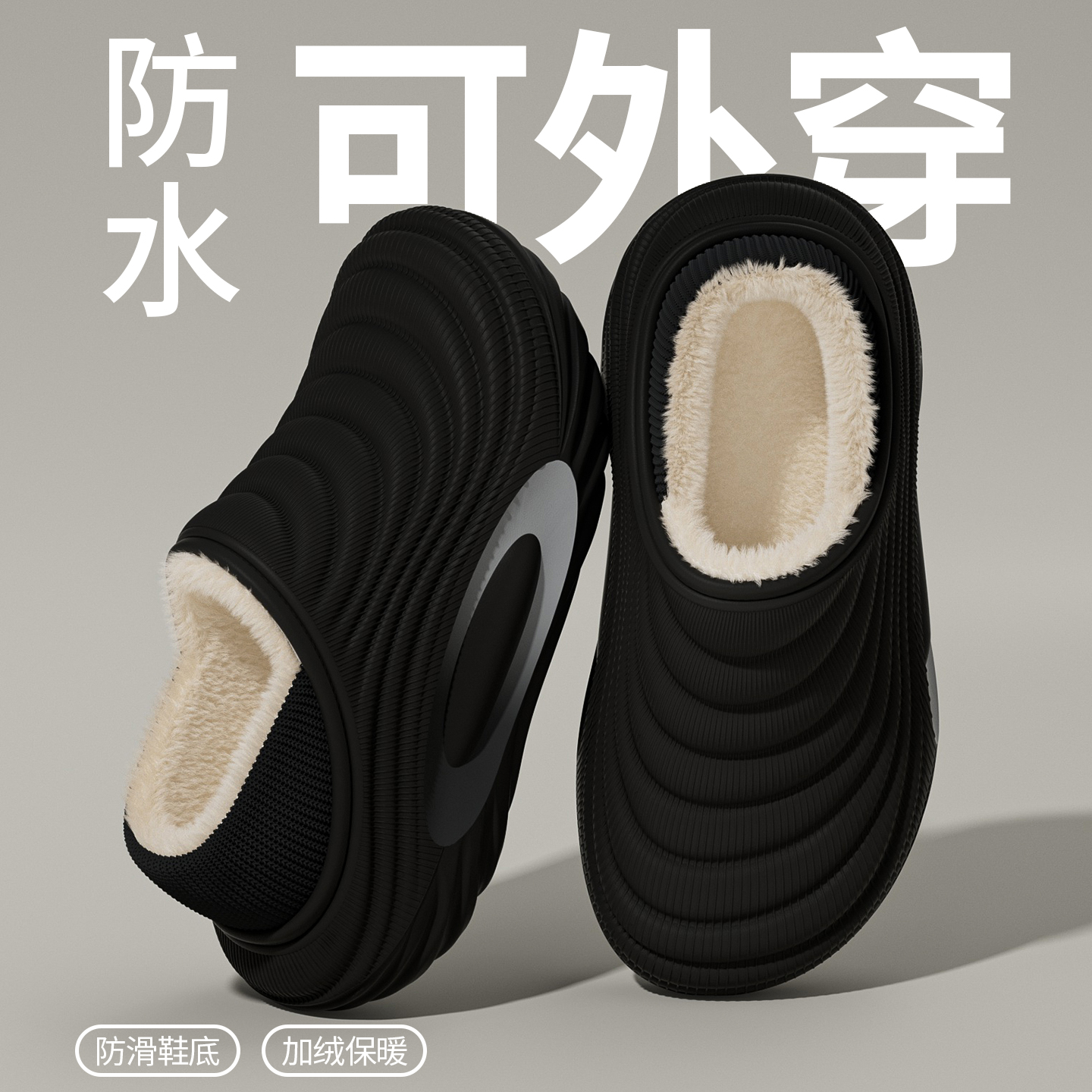 防水棉拖鞋男款秋冬季2025新款室内居家保暖加绒防滑包跟棉鞋外穿,浙江 金华