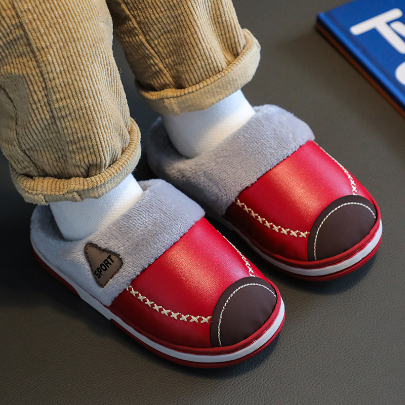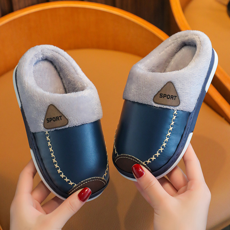 儿童棉鞋秋冬季男童皮面防水小孩居家室内女童宝宝加绒保暖棉拖鞋,浙江 杭州