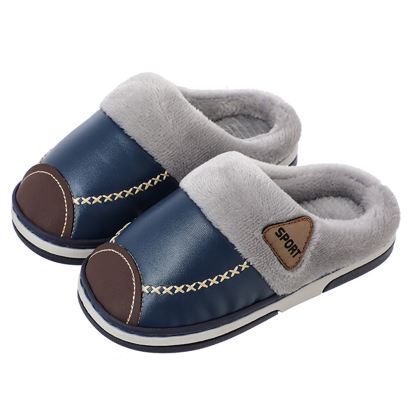 儿童棉鞋秋冬季男童皮面防水小孩居家室内女童宝宝加绒保暖棉拖鞋