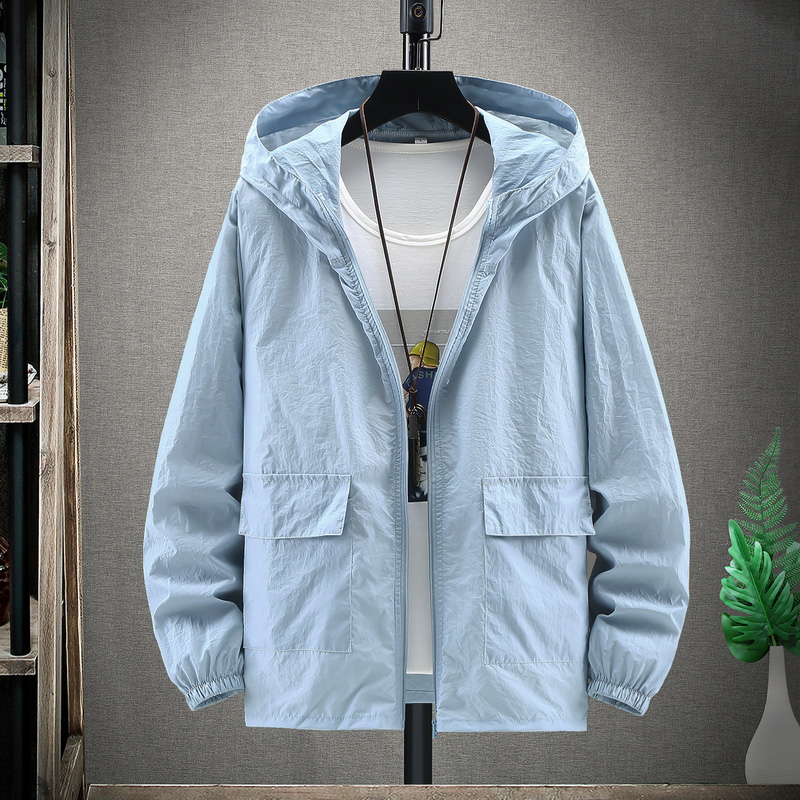 男纯色休闲皮肤衣春夏冰丝薄款户外防晒服加肥加大码宽松透气外套,河北 沧州