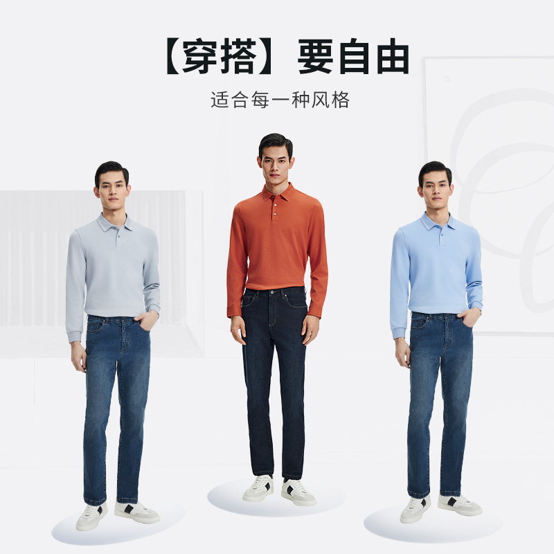 【弹力耐磨】金利来牛仔裤男2025秋冬新款直筒厚款蓝色休闲裤男士,广东 广州