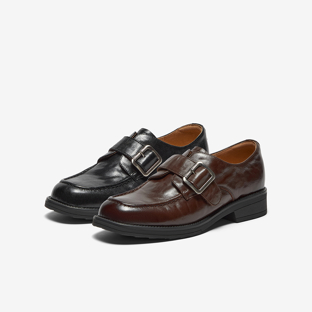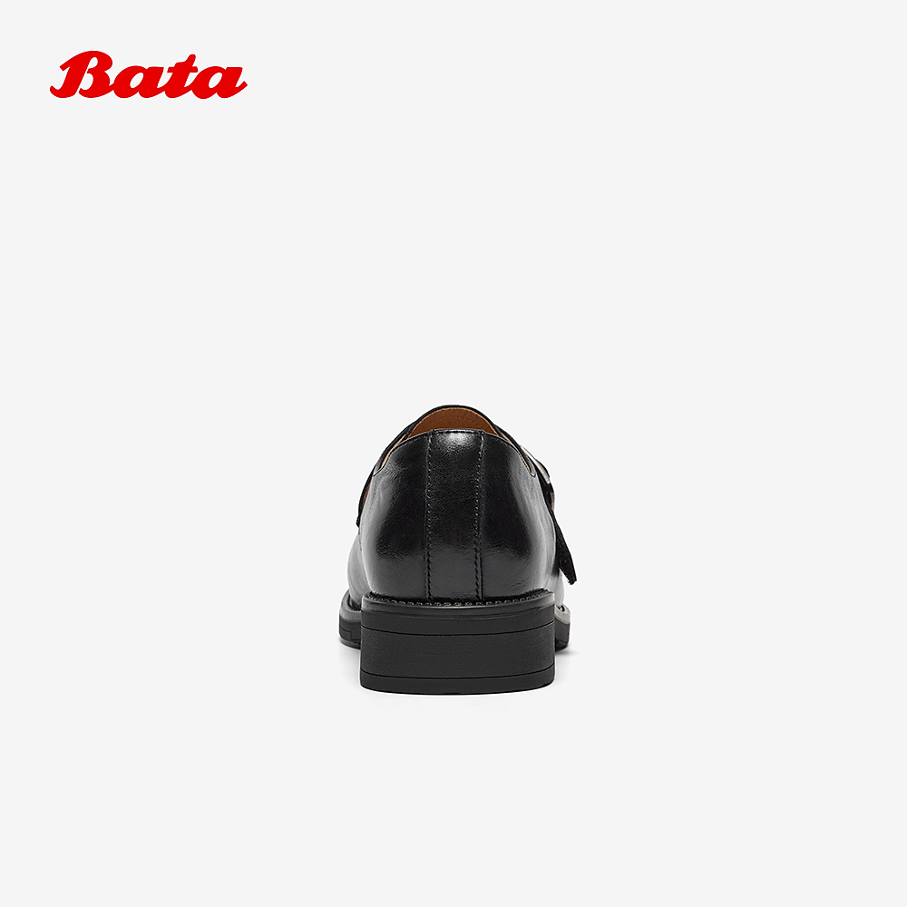 Bata乐福鞋女2025秋季新款复古英伦风牛皮通勤粗跟单鞋C5563CM5