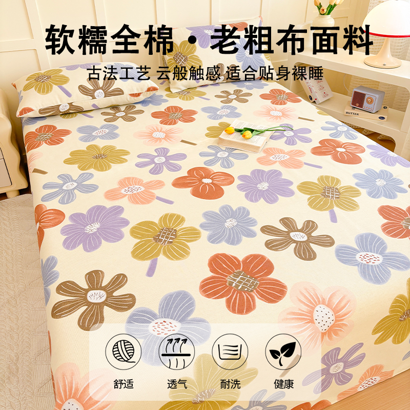 四季通用老粗布床单非纯棉100全棉印花棉麻布2025新款被单三件套