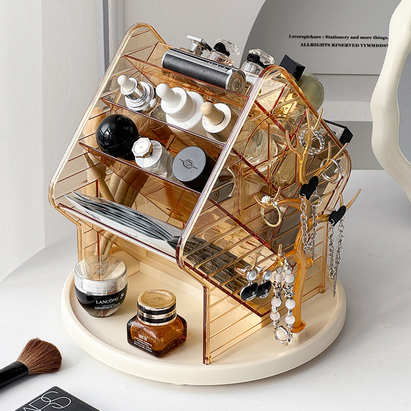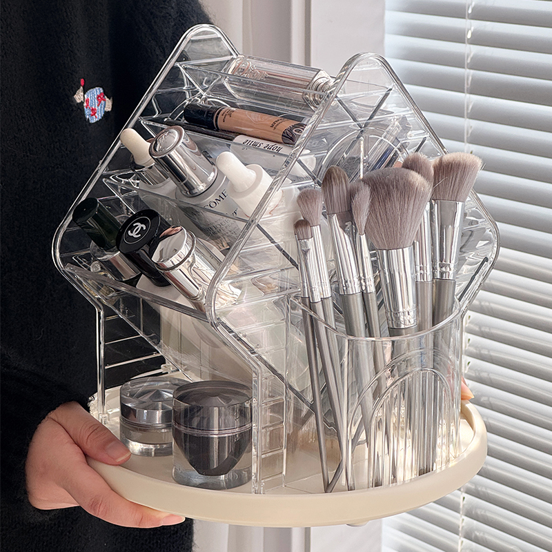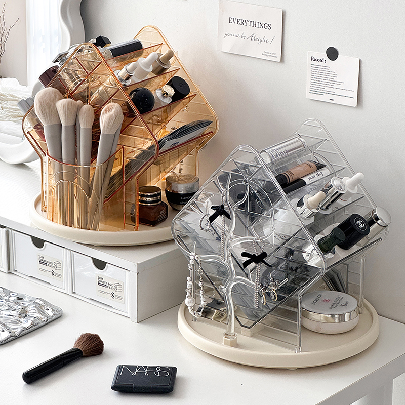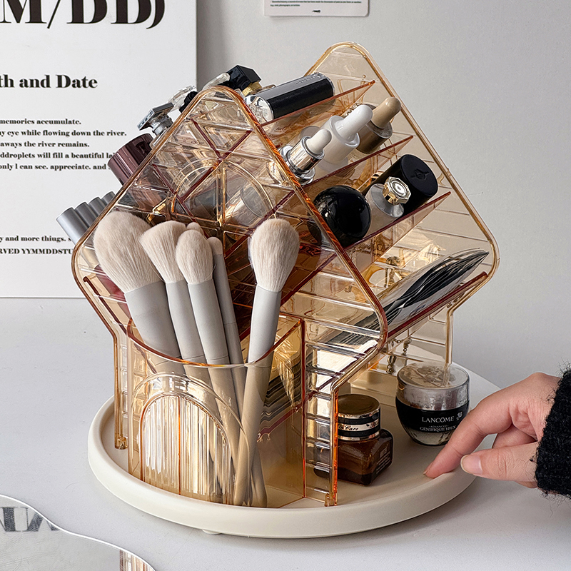 桌面化妆品收纳盒高级感可旋转化妆刷筒梳妆台口红首饰整理置物架,浙江 金华