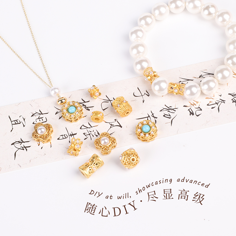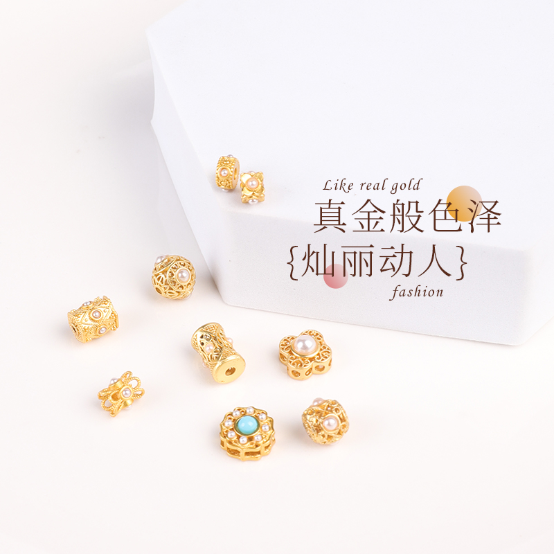 古法沙金diy配件材料手链项链18k小滴溜珍珠桶珠隔珠手串金珠配饰,浙江 金华